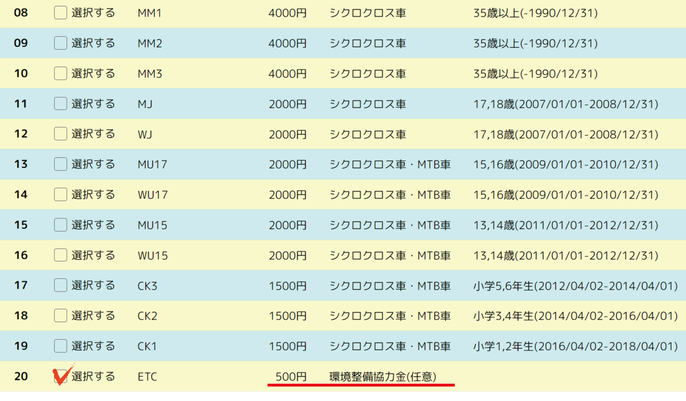 東海シクロクロス 環境整備協力金につきましてはエントリーとともに選択ができます。レースに出ない方でも環境整備協力金の申込みは可能です。